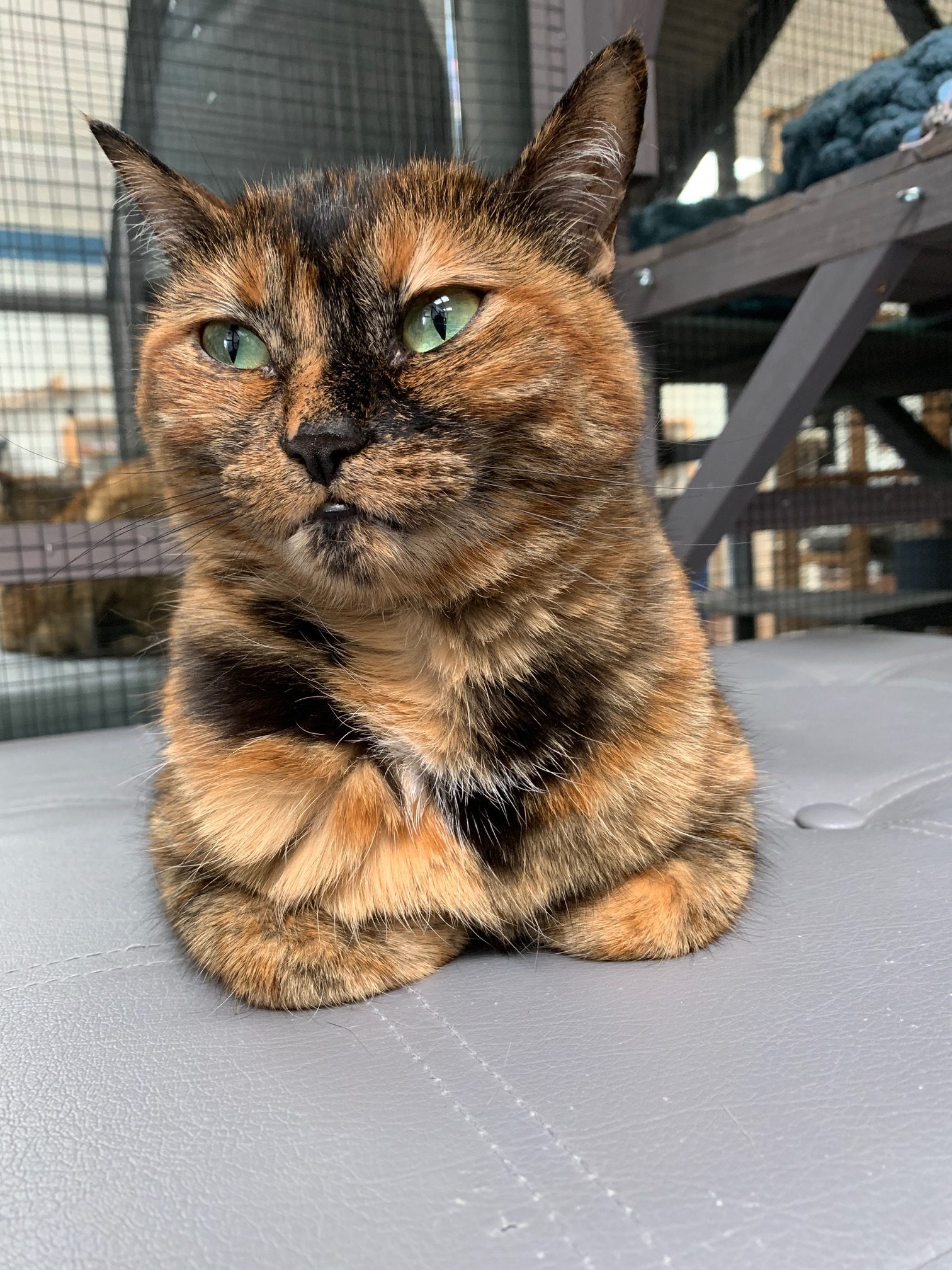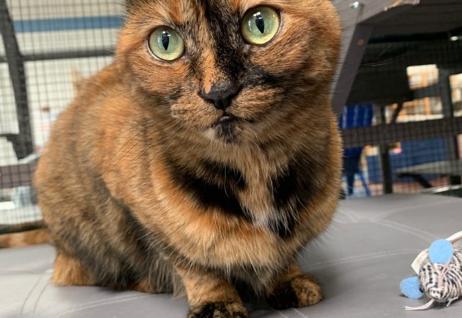 Daisy was brought back to us after living with her adopted family for 3.5 years when they got into a situation where they could no longer keep her. Daisy has been around children and was an only cat in her previous home. She hisses at the other cats if they are in her personal space in the lounge but doesn’t seem to actively instigate any trouble. She’s a sweetheart who is missing having a real home and her own people to love her. She loves catnip and silvervine and also likes a good scritch on her forehead sometimes. It seems like she warms up to certain people so we suspect she will have a big say in who her next adopter is.