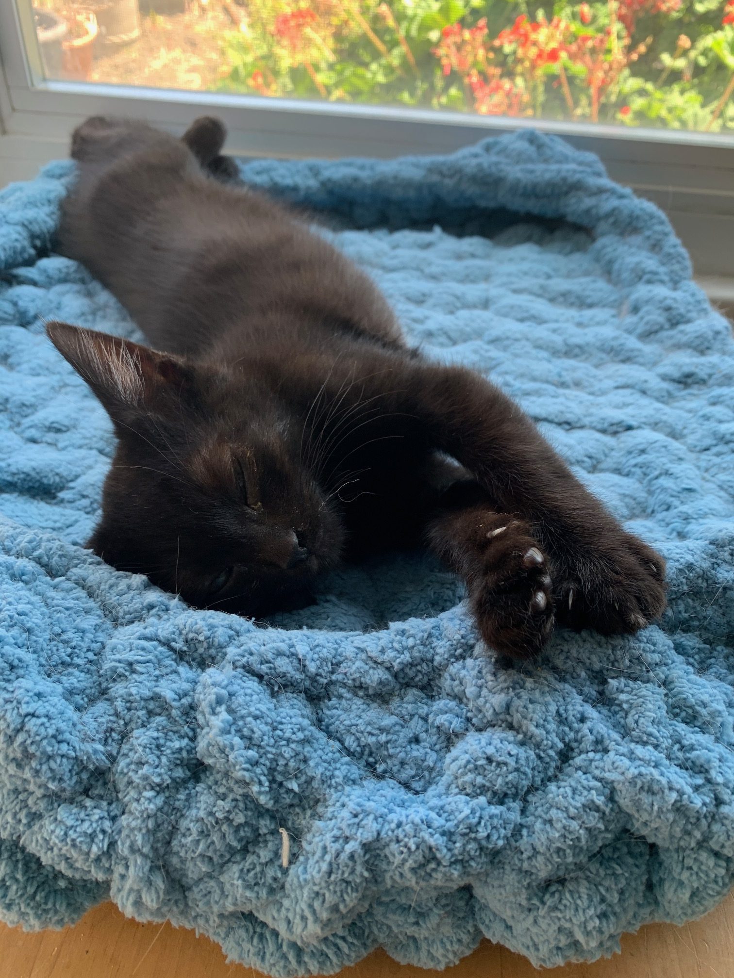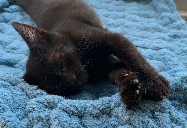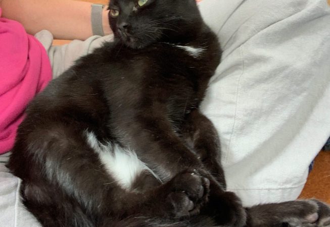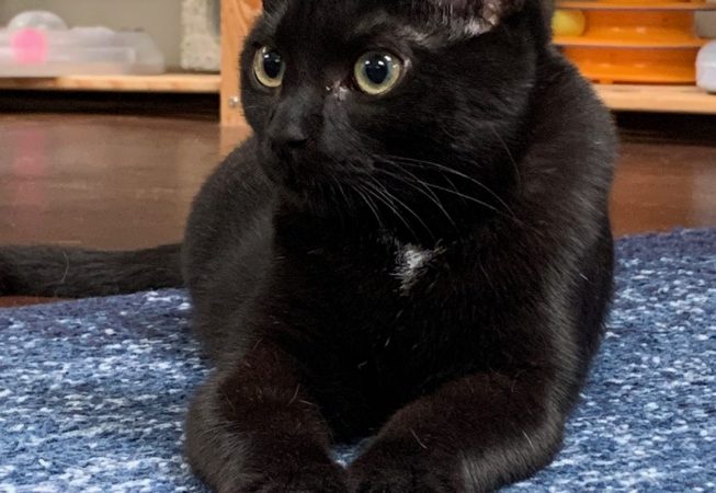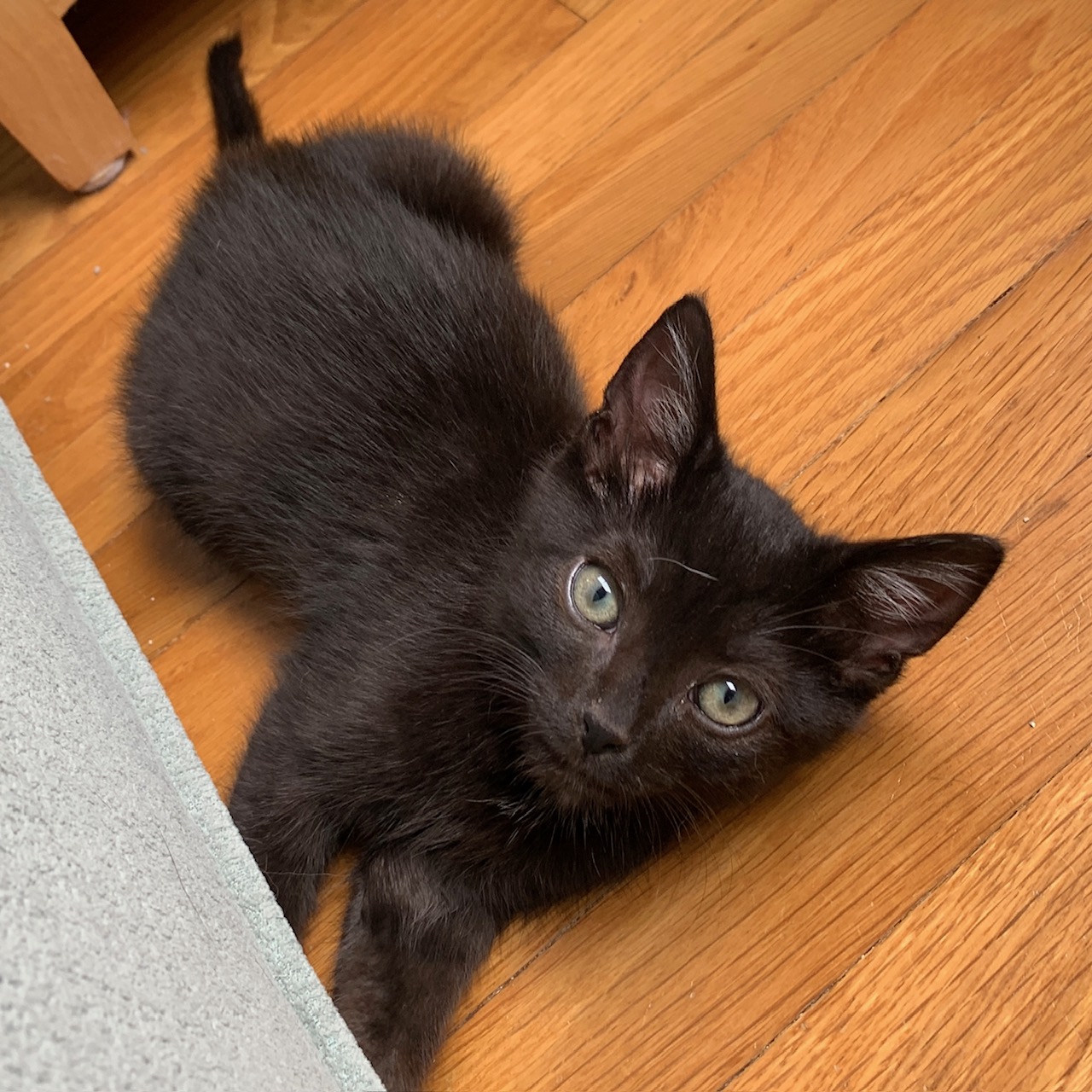 Huey is a very friendly little kitten who looks all black but is secretly sporting a white funny and chest! He’s an all-around nice cat.