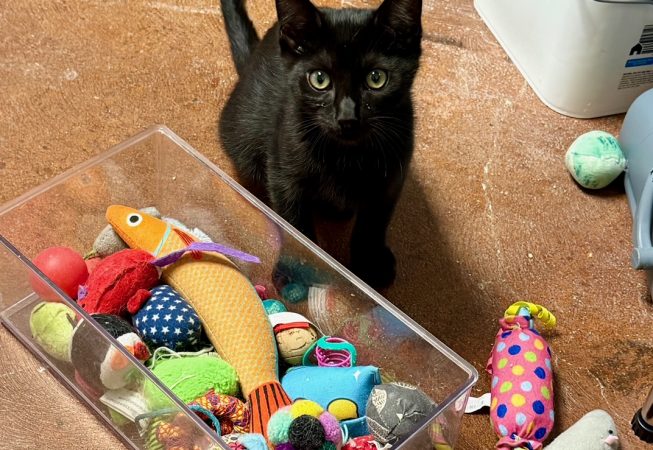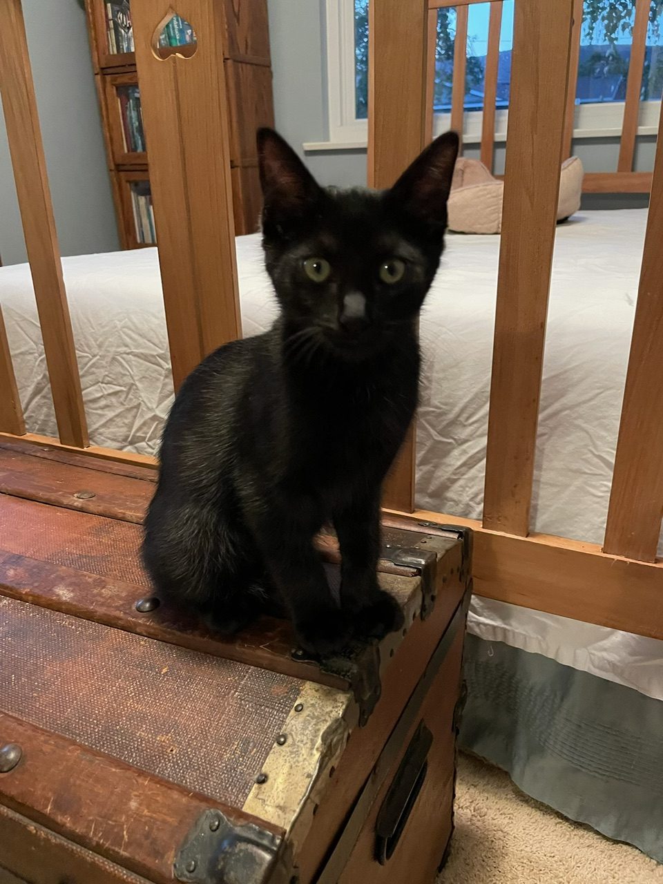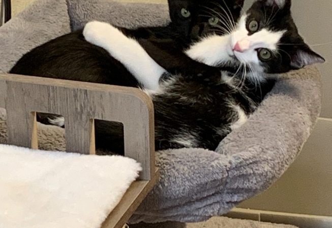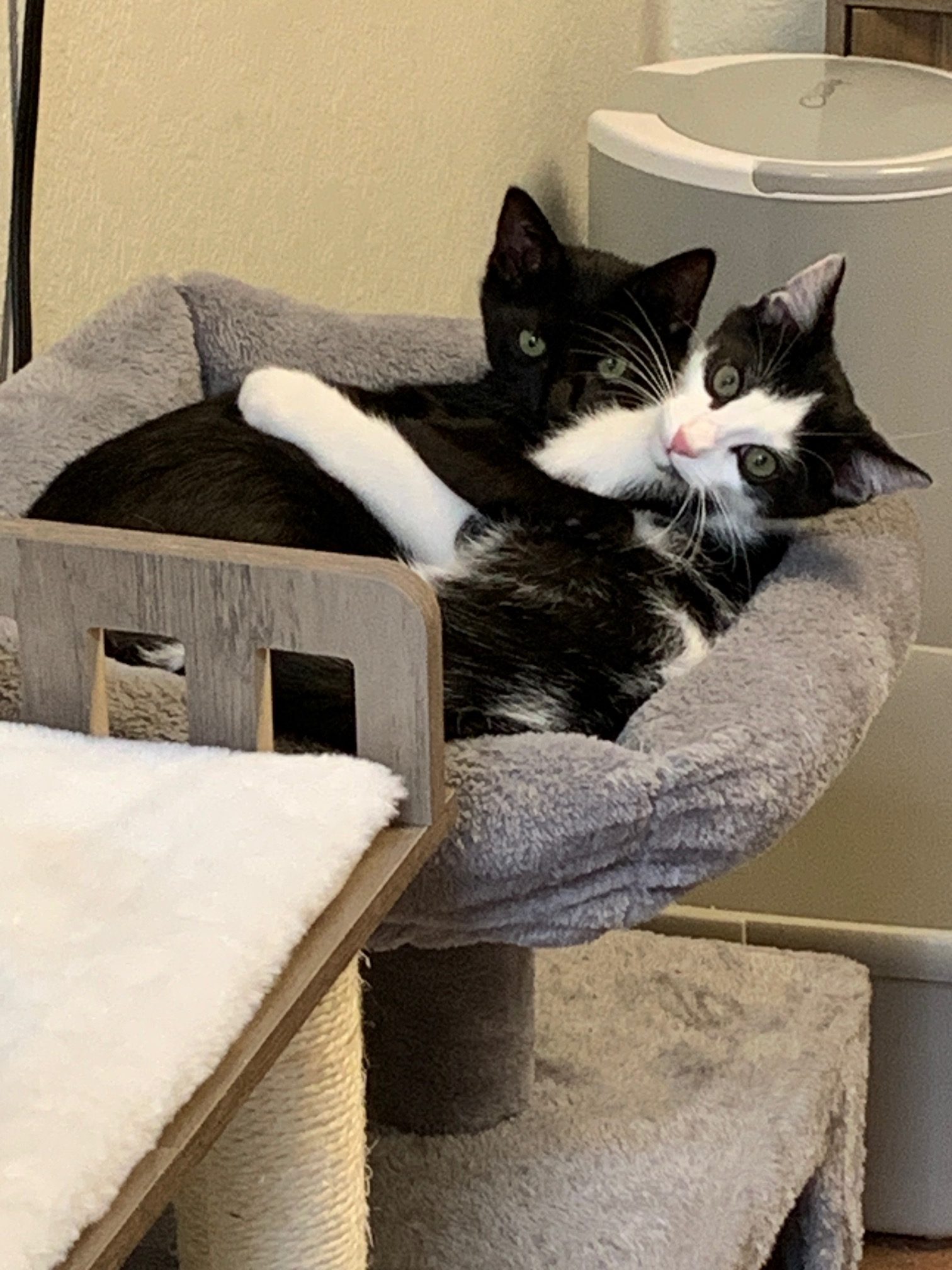 Yogi is one of four kittens we took into our care along with their mama, Teacup. Teacup and the two sisters were already adopted. Yogi and his brother Peppermint get along great! They both have big kitten energy. We’d love to adopt them together.