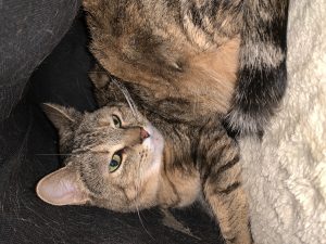 Teacup was with us in foster for about a month and then adopted in August 2025 after a couple of weeks in the lounge!