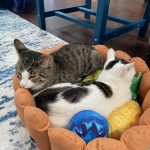 Our cats are spayed/neutered, microchipped, tested negative for FIV and FeLV, dewormed, and up-to-date on age-appropriate vaccinations. Our adoption fee is $150 per cat, $200 for bonded pairs, and $225 for other pairs. Fees help cover medical expenses as well as daily care and overhead costs of providing the lounge as a home.